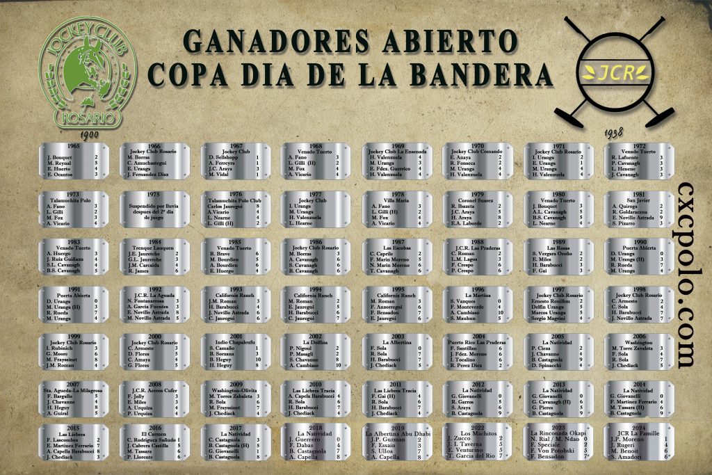 Mientras tanto, en la Cuna de la Bandera, el Jockey Club de Rosario organiza el torneo «Copa Día de la Bandera», uno de los más importantes del interior del país. Este torneo se destaca por su nivel competitivo, comparable al de la Copa de la Reina en Inglaterra. ¿Por qué? Porque convoca a jugadores de alto hándicap como Adolfo Cambiaso, Gonzalo Pieres, Lolo Castañola y sus hijos Barto y Jeta, Alfredo Cappella, los hermanos Heguy, Salvador Ulloa, Eduardo Novillo Astrada, entre otros.